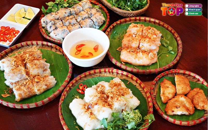 Bánh cuốn là một trong những đặc sản Thanh Hóa nổi tiếng, mang một hương vị thơm ngon rất riêng, khó có thể lẫn với bất kỳ loại bánh cuốn nào khác. Vỏ bánh mỏng, trong suốt như tờ giấy, được tráng bằng bột gạo pha loãng. Bên trong là nhân thịt băm thơm lừng, quyện cùng tôm tươi ngọt lịm, nấm hương và mộc nhĩ tạo nên một hương vị đậm đà khó quên. Để tăng thêm phần hấp dẫn, bánh cuốn Thanh Hóa còn được rắc thêm một lớp hành phi vàng giòn tan tạo nên một tổng thể món ăn hoàn hảo về cả màu sắc lẫn hương vị.