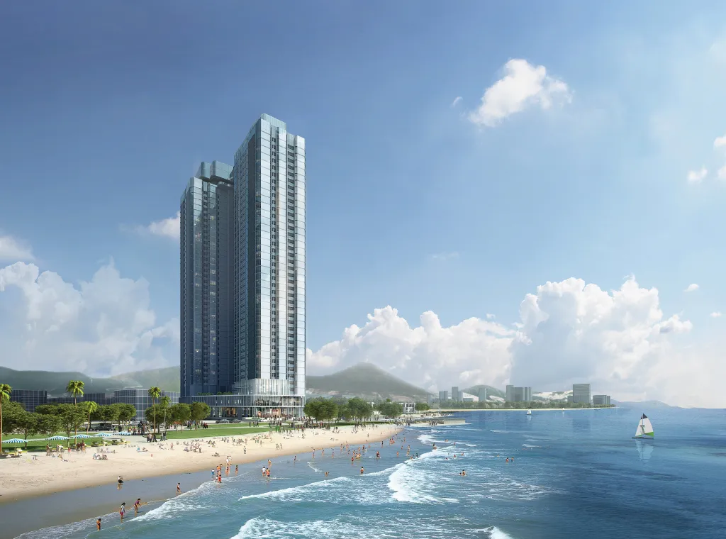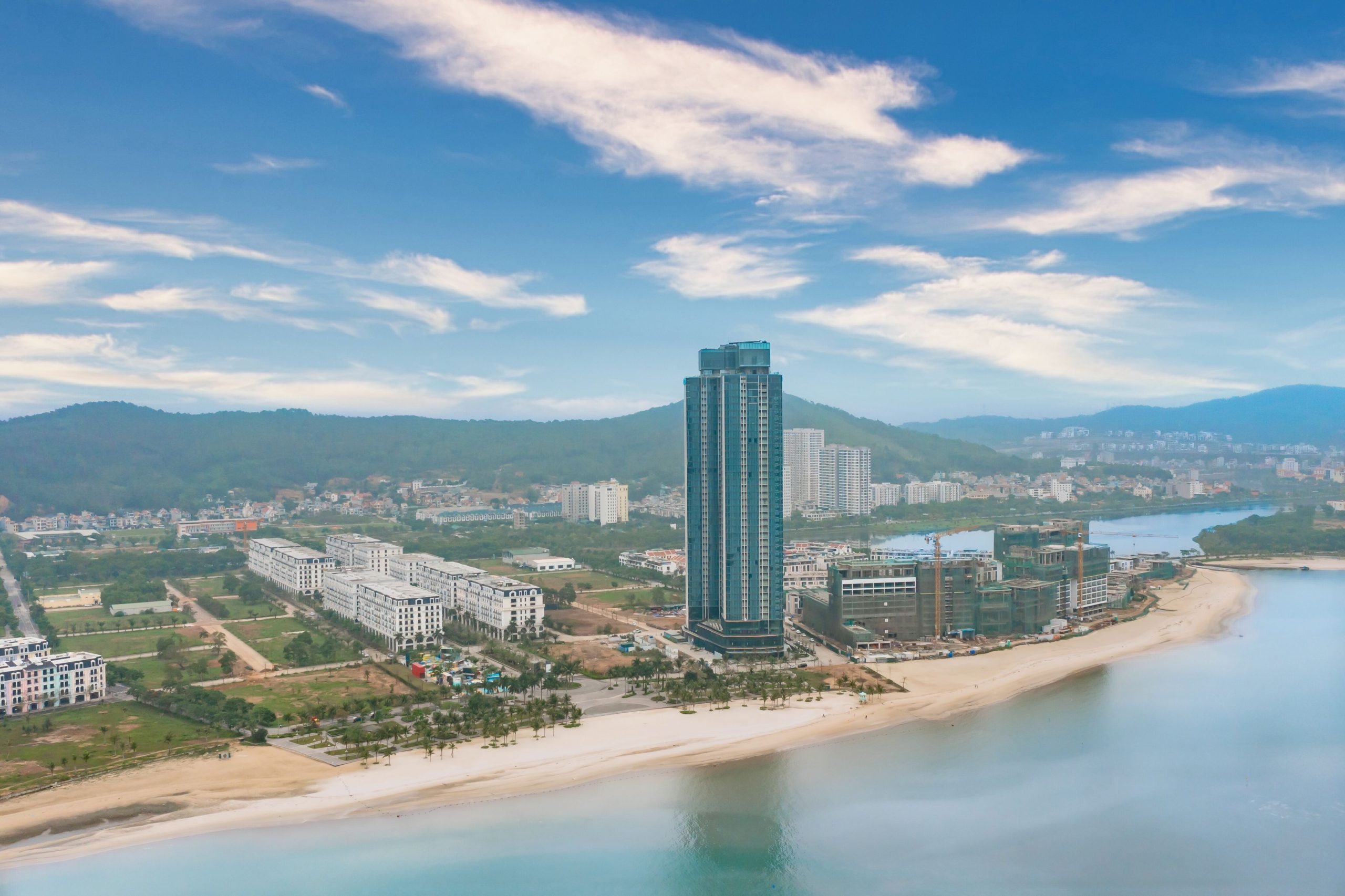 - Villa cao cấp hướng biển: Cửa kính lớn đón ánh sáng, ban công view thoáng đãng, mang lại cảm giác sang trọng và thư giãn.
