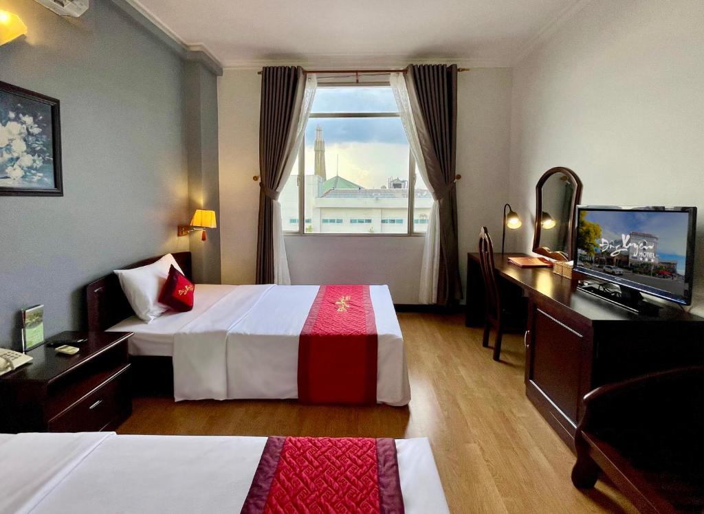Tất cả phòng nghỉ đều có cửa sổ lớn, view nhìn ra thành phố hoặc sông Hậu, nội thất ấm cúng, tiện nghi đạt chuẩn 3–4 sao.