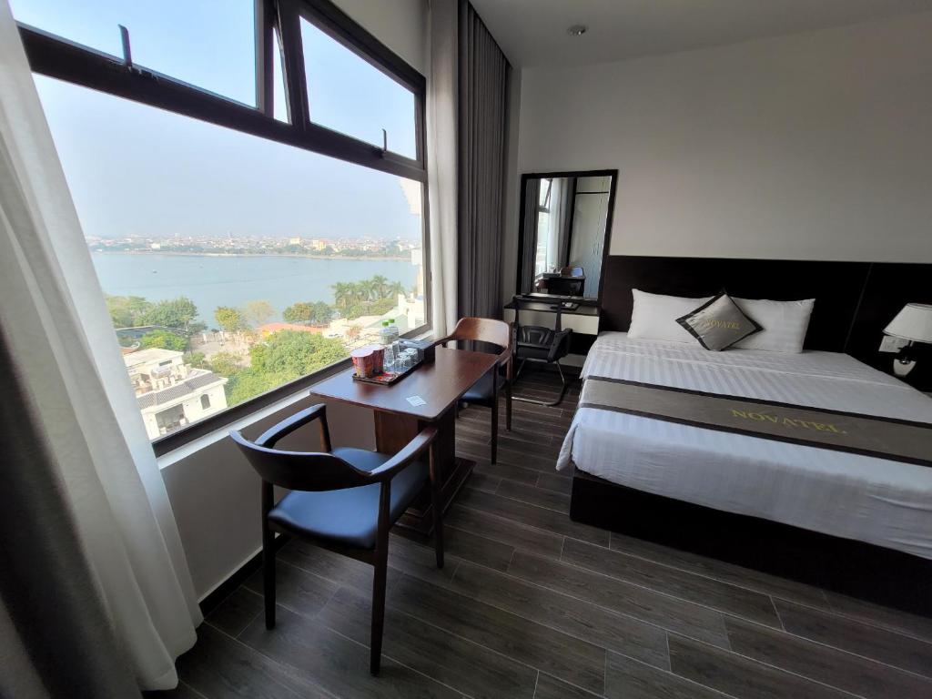 - Phòng giường đôi hướng hồ (36 m²) có ban công riêng, tạo không gian thư giãn và thoải mái.